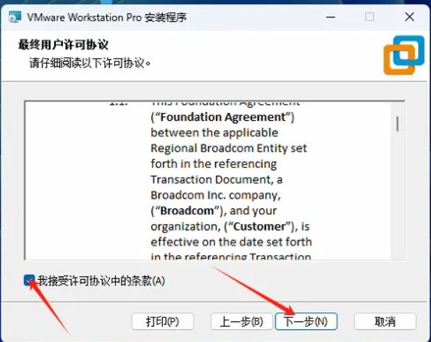 第4步、勾选我接受许可协议中的条款,后点击下一步