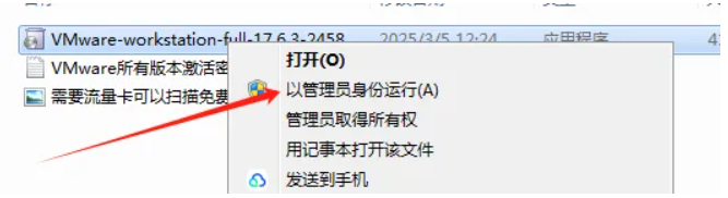 第2步、解压后以管理员身份运行VMware-workstation-full-17.6.3-24583834.exe