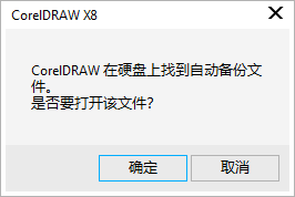 在编辑文档过程中,如果遇到计算机故障或误操作,导致文档没有保存就关闭了,用户可通过CorelDRAW X8提供的自动恢复文档功能恢复文档。操作方法为:重启CorelDRAW X8,系统将会自动弹出“询问”对话框(见图),单击该对话框中的“确定”按钮,即可恢复未保存的文档。