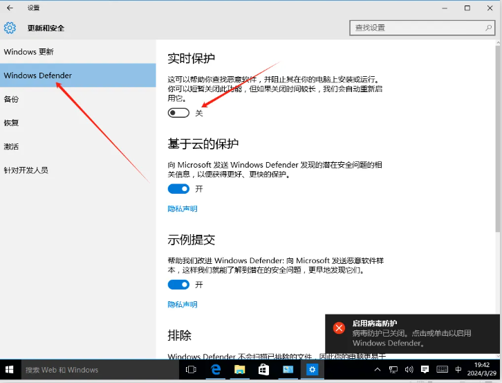 3、这时候需要再“设置”>”更新和安全”中关闭【实时保护】